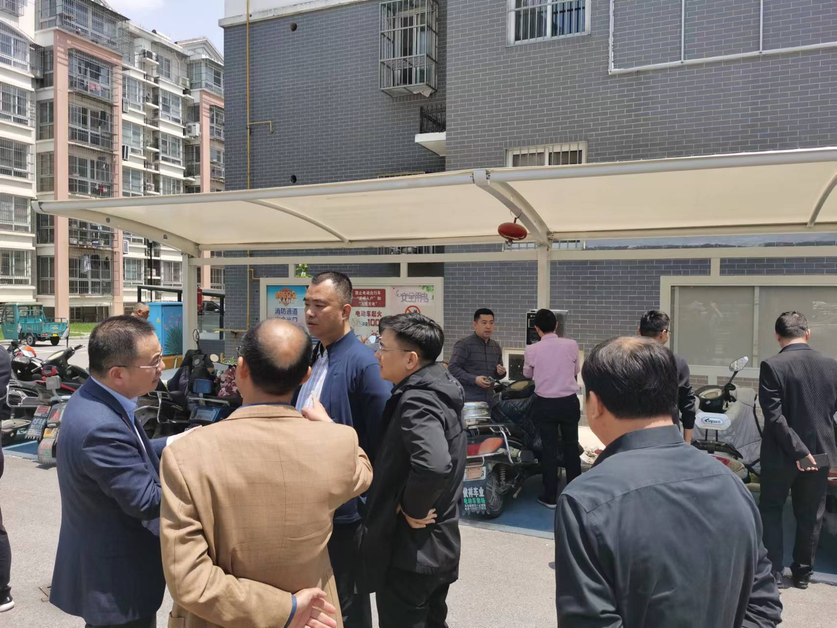 隨后,與會各方到碧水嘉苑小區(qū),現(xiàn)場察看了雨棚式充電樁和立柱式充電樁的建設(shè)及運營情況,并就安裝選址、充電設(shè)備、消防設(shè)施等進一步交流。