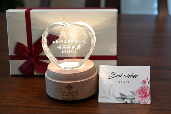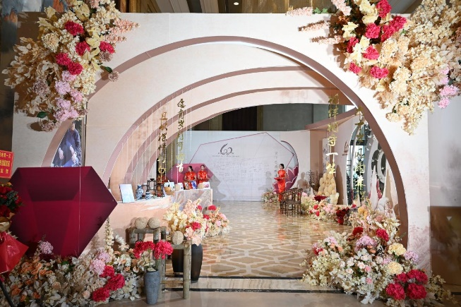 活動(dòng)現(xiàn)場,一組組照片滿載著恩愛之情、感激之意和幸福之聲,記錄了這對(duì)恩愛夫婦的愛情故事,喚起了大家美好的回憶。酒店總經(jīng)理封光雄送上紀(jì)念品和誠摯祝福,并與賓客一起合影紀(jì)念。特色禮物與互動(dòng)活動(dòng)既體現(xiàn)了酒店“細(xì)意濃情,體驗(yàn)金陵”的經(jīng)營理念,又增進(jìn)了與賓客之間的情感聯(lián)系。驛都金陵大酒店將不斷創(chuàng)新進(jìn)取,以精致服務(wù)為賓客提供獨(dú)特舒適的體驗(yàn),不斷提升酒店口碑和品牌形象。