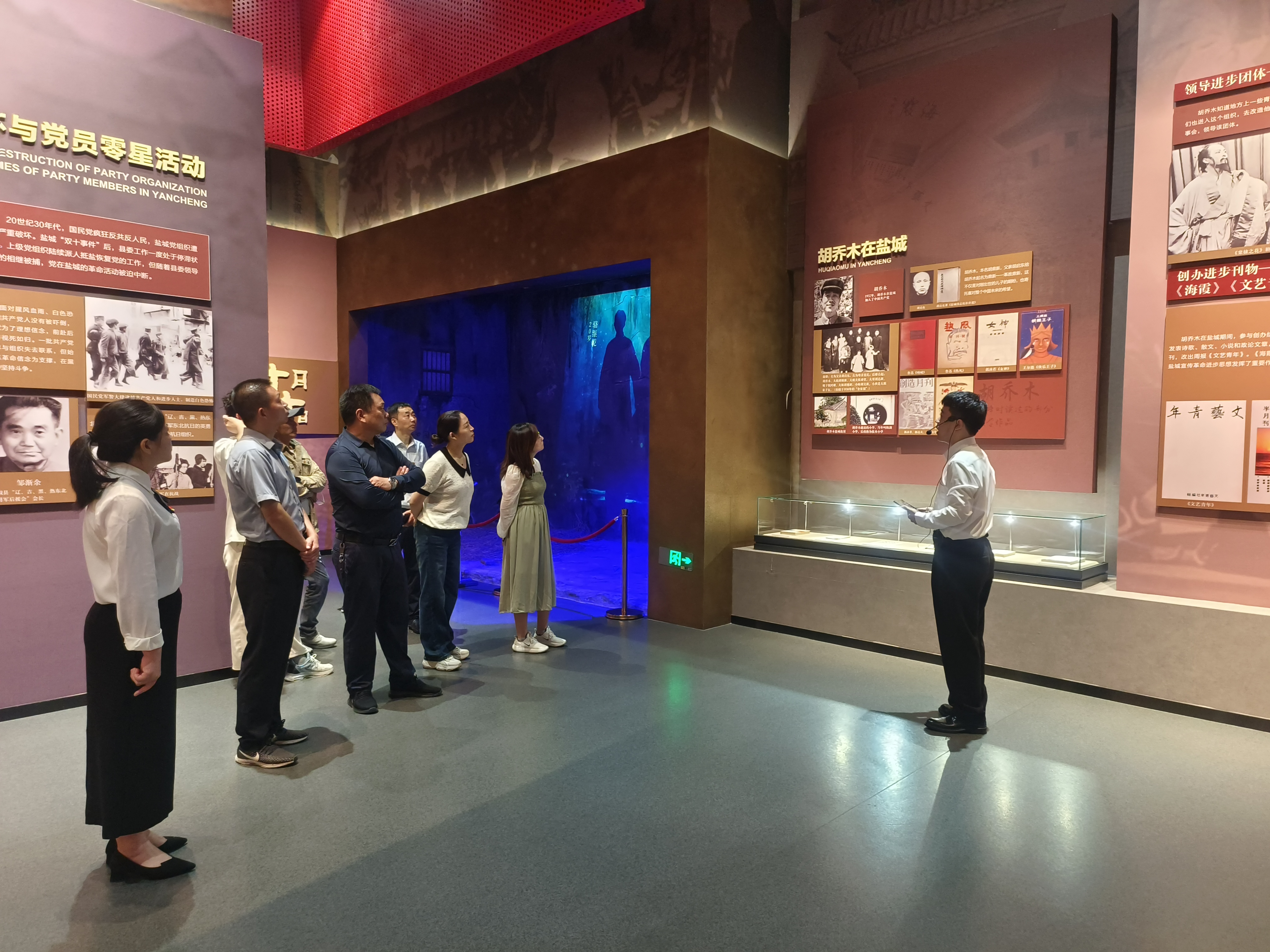 在鹽都革命陳列館,全體黨員通過生動(dòng)的講解、醒目的圖文、逼真的復(fù)原場景和視頻短片,了解了鹽都人民在中國共產(chǎn)黨領(lǐng)導(dǎo)下的革命史、斗爭史、英雄史,感悟了革命先烈們聽黨指揮、艱苦奮斗的崇高情懷和革命精神。在三胡故里,全體黨員了解了三位巨人的生平事跡和思想精髓,領(lǐng)會(huì)了他們?yōu)橹袊母锩徒ㄔO(shè)事業(yè)做出的卓越貢獻(xiàn)。